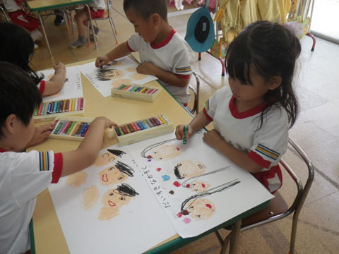 家族の似顔絵も描いて・・、
