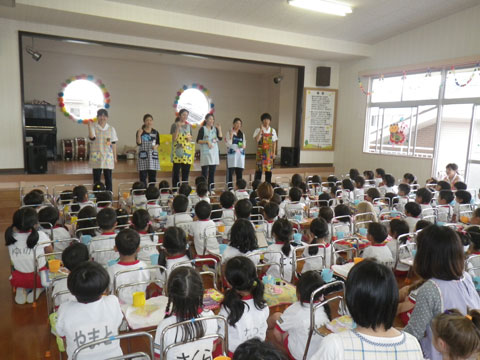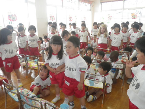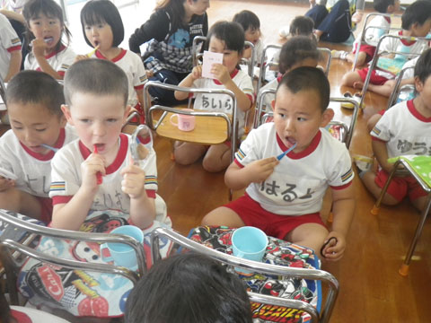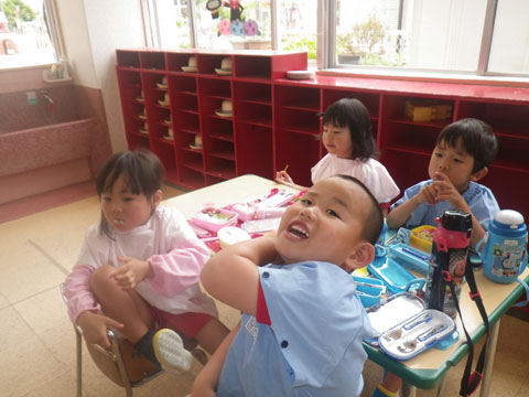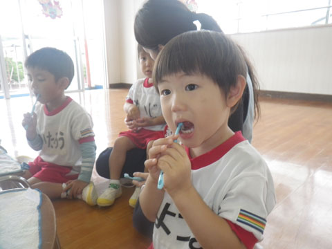 歯ブラシ・手鏡を持っておゆうぎ室へ集合