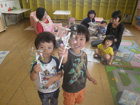 未就園児教室では、『かざぐるま』を作りました