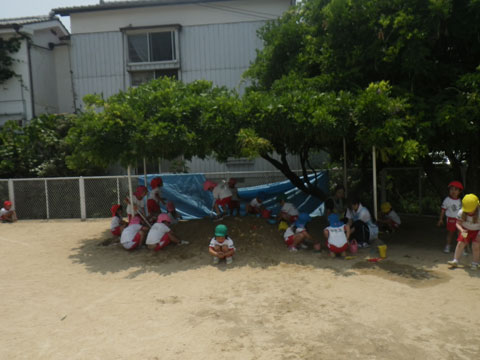 ちょうど日陰になる砂場は午後も満員御礼