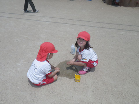 年少児は園内開放であそびに来ていた小さな友だちとあそんで、