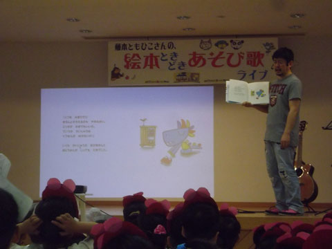 あそび歌からはじまり、絵本や歌、そして目の前でスケッチブックに