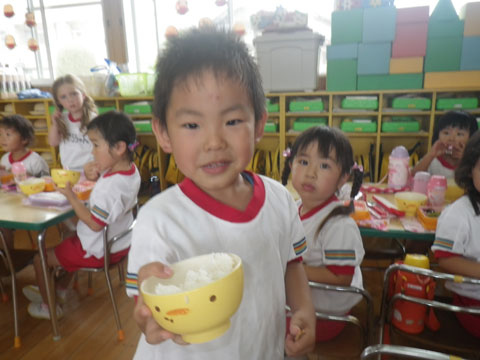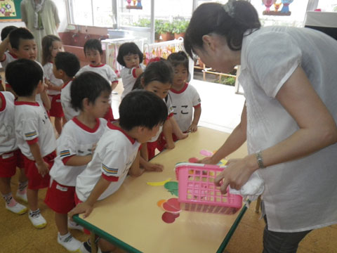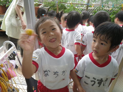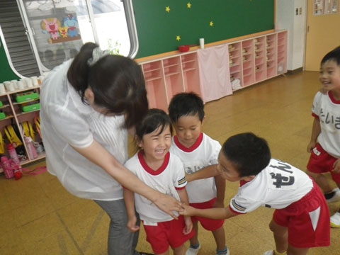 朝から元気に『麦わらのタフィ』とあそぶ年長児。
