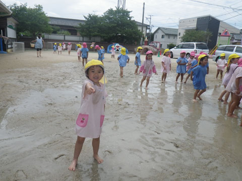前半組が散々あそんだあとなので、はじめから地面はビチャビチャでしたが
