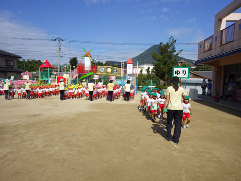 素晴らしい天気に恵まれた本日、東相浦幼稚園にて総練習