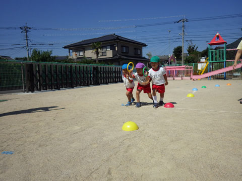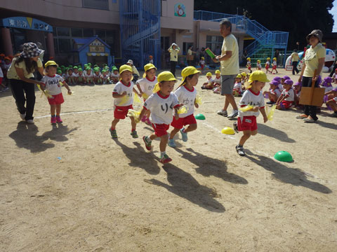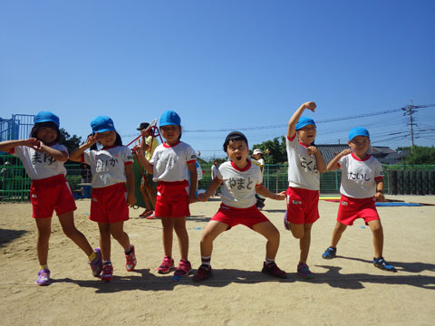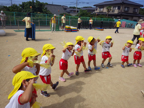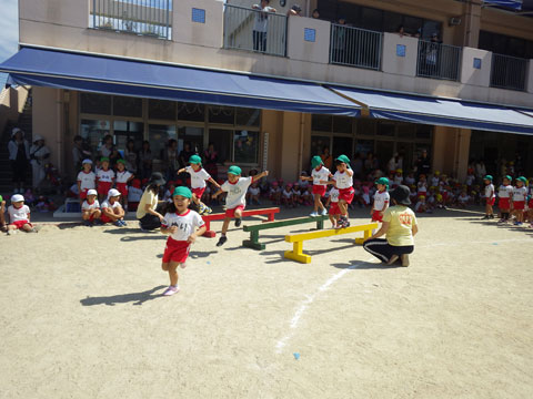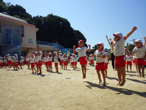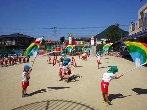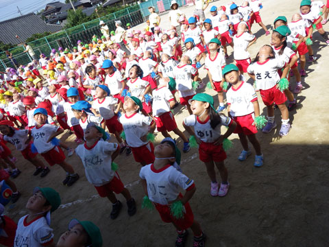 年中児の組体操・バルーン、年長児のマーチングも初披露