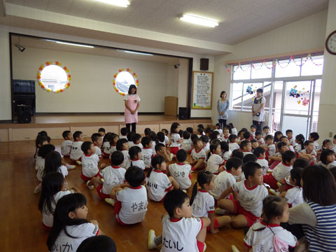 今日のおはじまりでは実習の先生1名とのおわかれをしました。