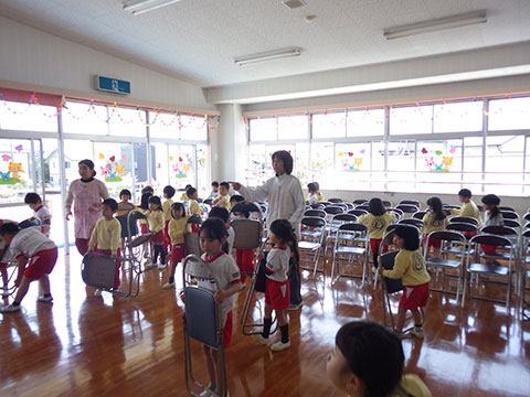明日の入園式のため、年長児がお手伝いをしてくれました