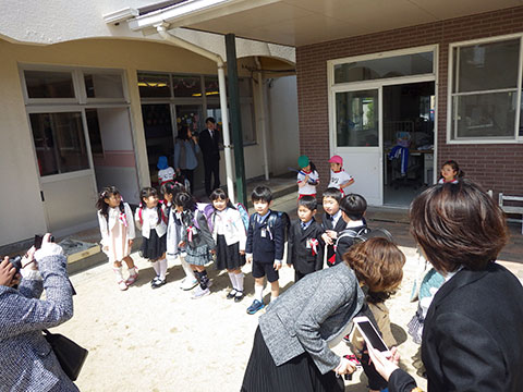 お昼頃、入学式を終えた新1年生が来園