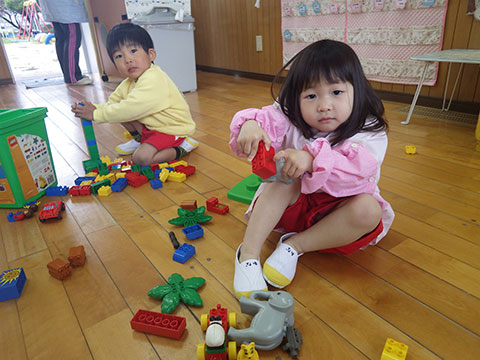 元気に登園し、すぐにニコニコあそびはじめる新入園児、