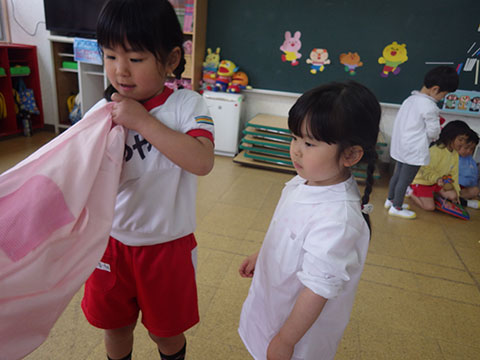 スモックや制服のたたみ方をしっかり教えてくれました