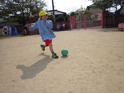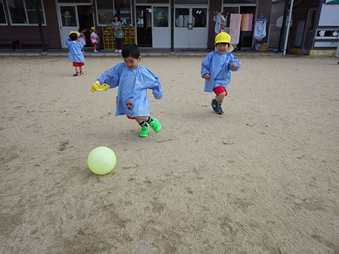 入園したての年少児さんがサッカーに夢中