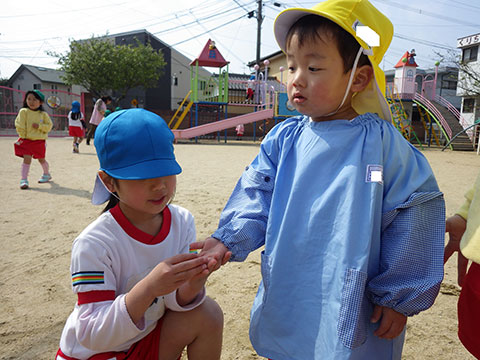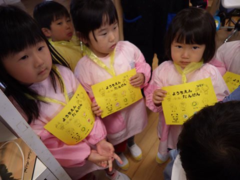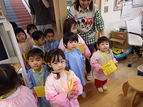 室内に入ってからは年少組のみんなが園内探検へ出発!
