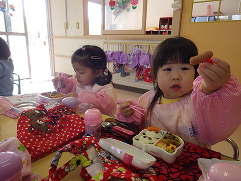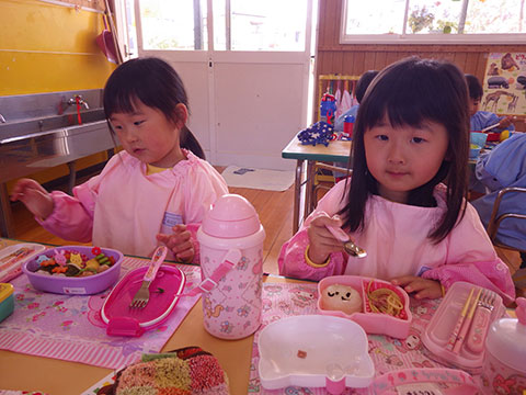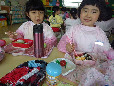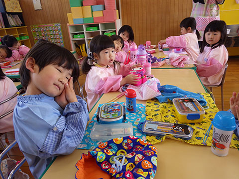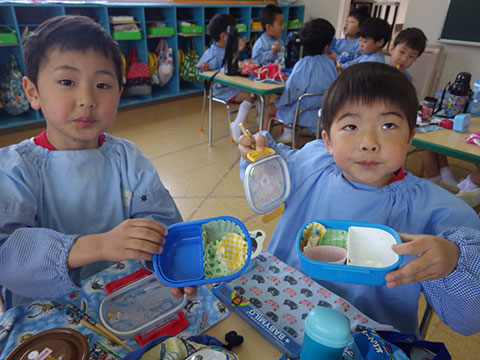 さあ、今日からはお昼ご飯も幼稚園で食べます
