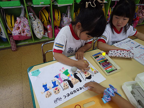 内容はそれぞれ製作をしたり、カラフルに絵を描いたり、