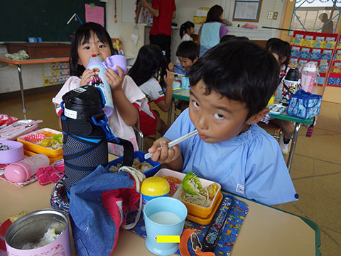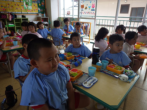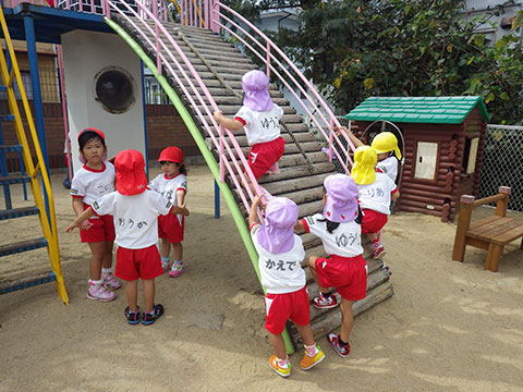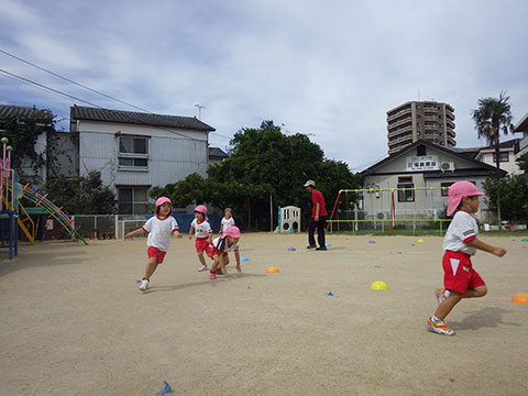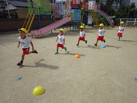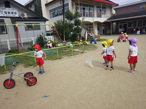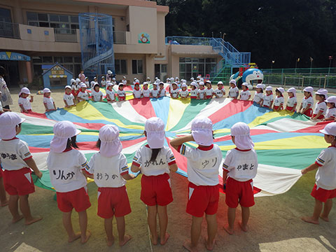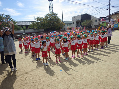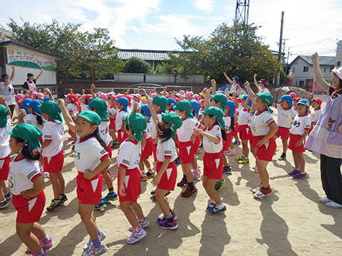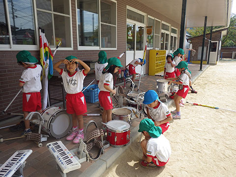 そのまま年長児はマーチング、年中児は東相浦幼稚園へ移動して組体操