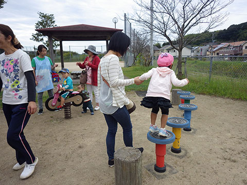 タイヤから木へ飛び移る『おサルごっこ』に、