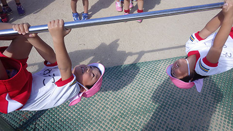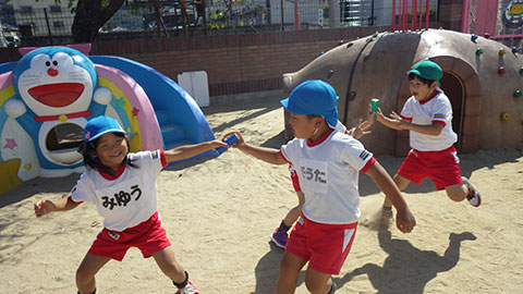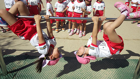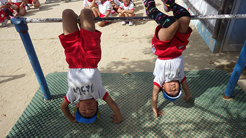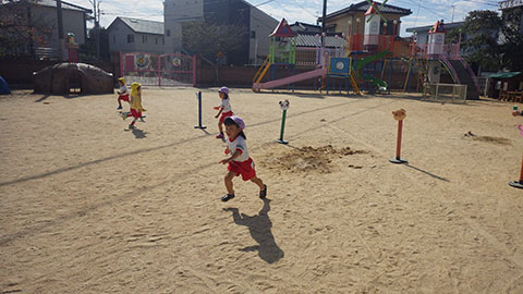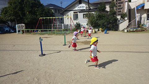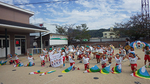 年長児が月曜日の奉納演奏に向けてマーチングの練習