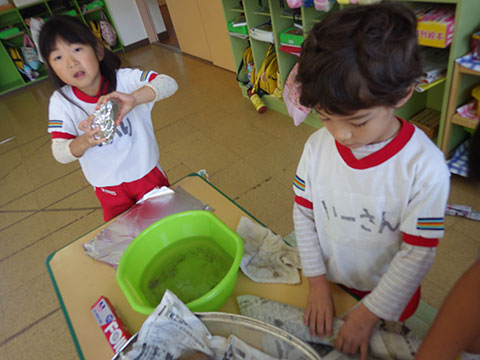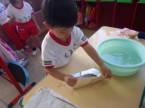 まずは洗って、濡れた新聞紙・アルミホイルで丁寧に丁寧に!
