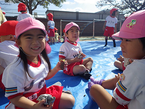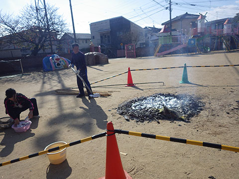 今日は園庭で焼き芋に