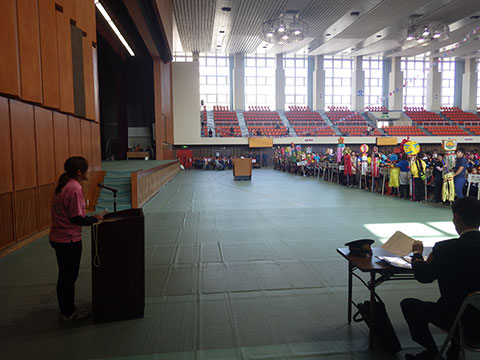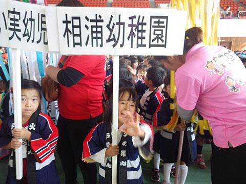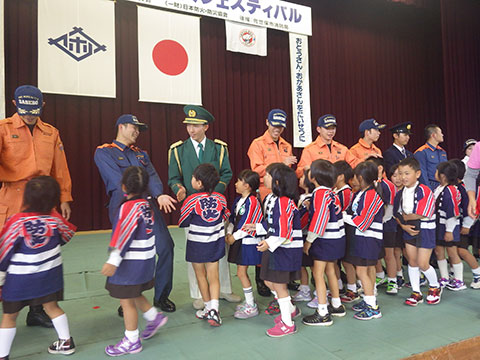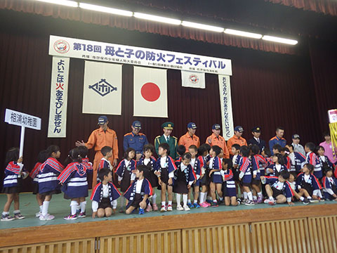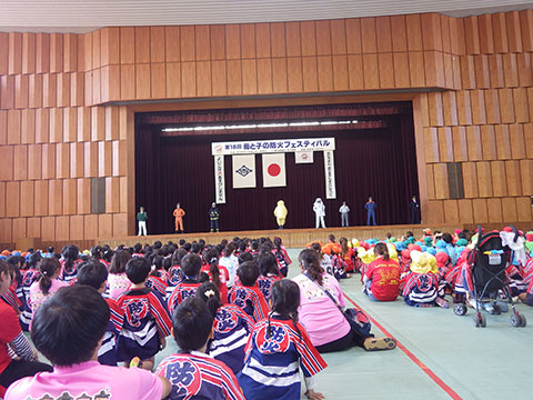 名前を呼ばれ入場行進をし、全員で防火の合言葉。