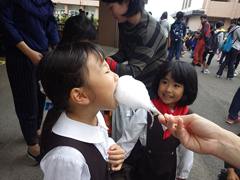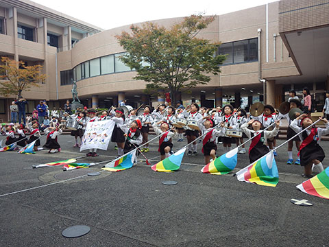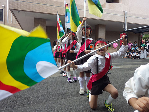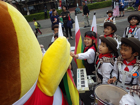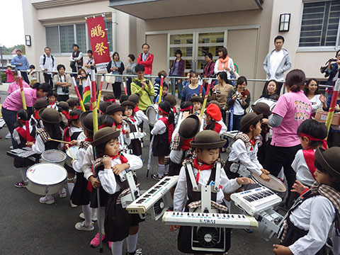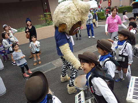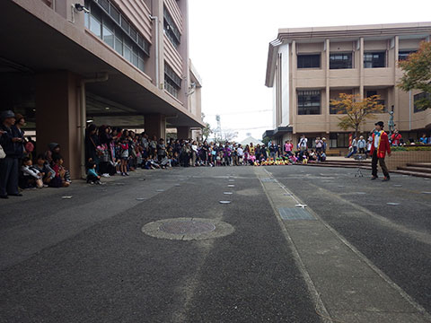 今日は、年長児最後のマーチング披露の場である大学の学園祭!