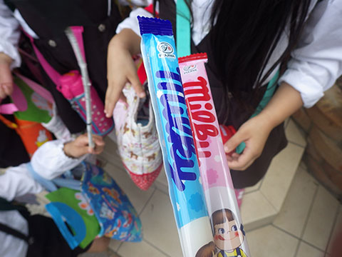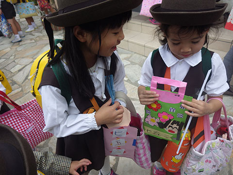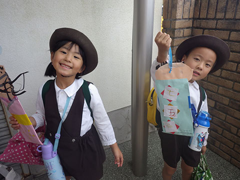 今日は手作りの飴袋に千歳飴を入れて持ち帰っています