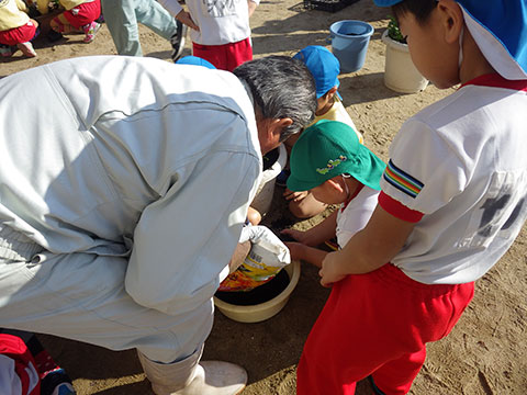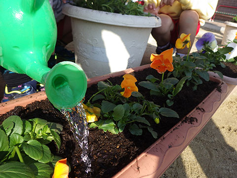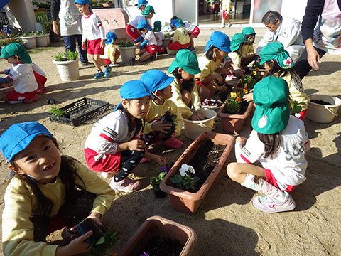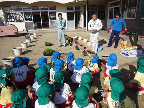 市役所の方が来園し、『パンジー』と『ノースポール』を植えました