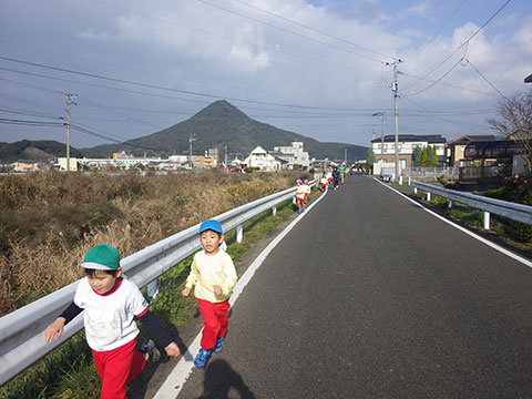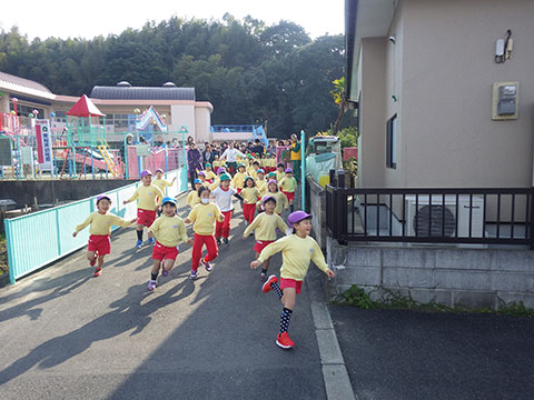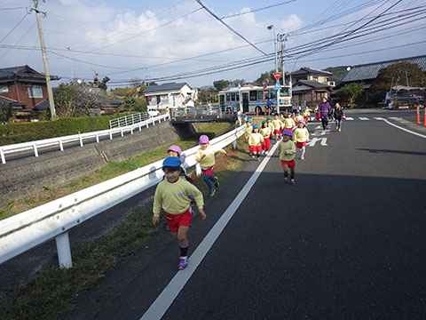 園児の声援を受けながらゴールを目指します
