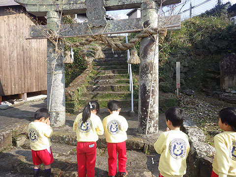 こちらも恒例、途中の神社で3学期の健闘を祈願