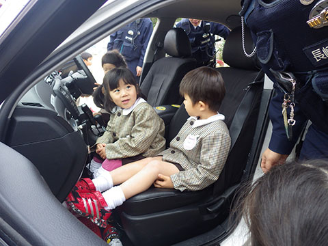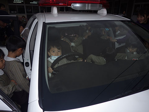 訓練のあとは、本物のパトカーに乗せていただきました