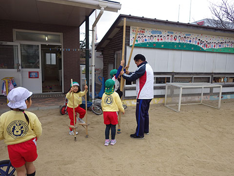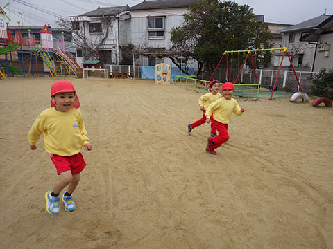気温もグっと下がり、鬼ごっこやなわとびで身体を温める姿が