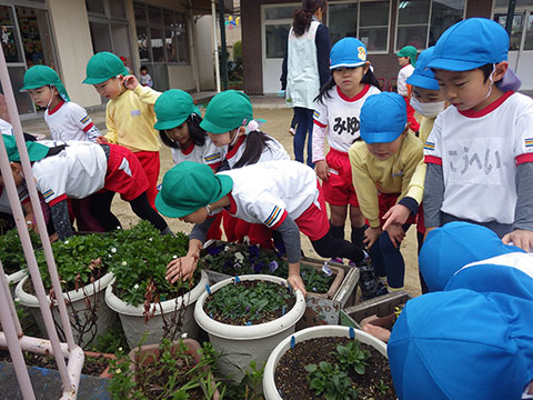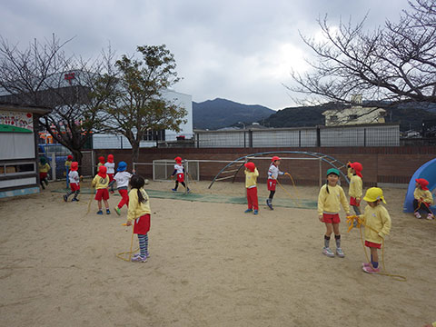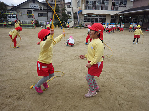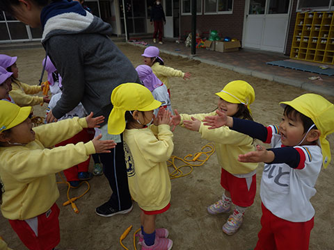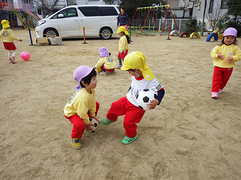 練習をしていた子も、一瞬で心を奪われ「おーい!」と