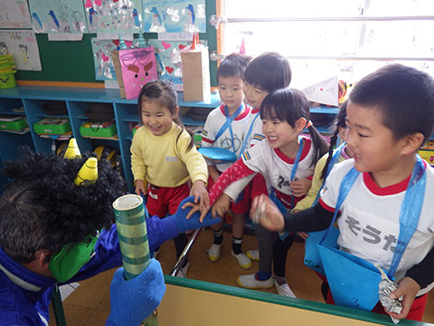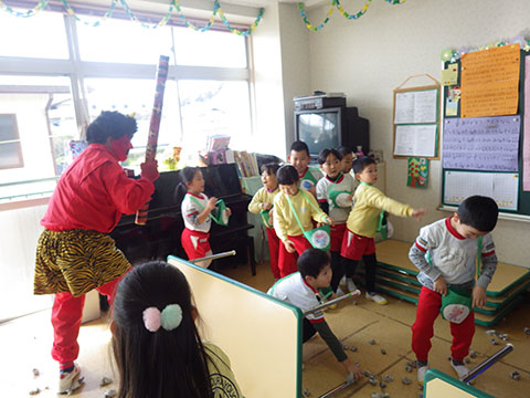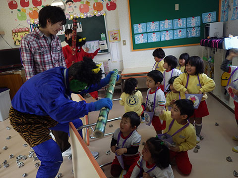 愛宕山に住んでいるとかいう噂の鬼が幼稚園にあそびに来る