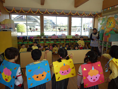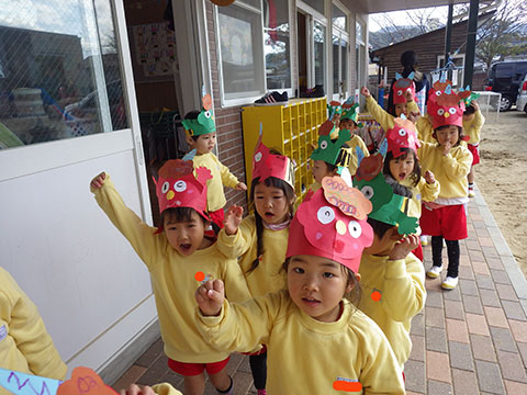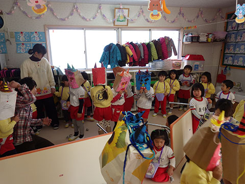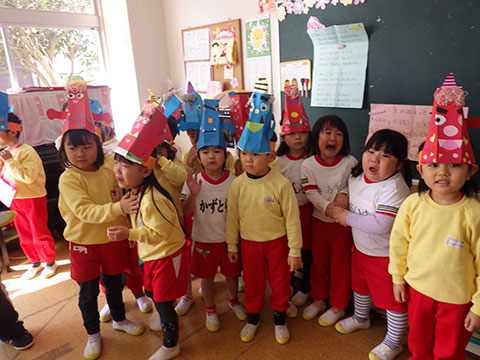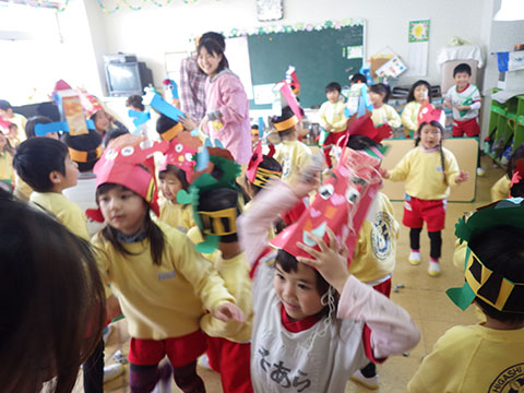 本物(?)の鬼も退散しましたので、今度は園児たちが