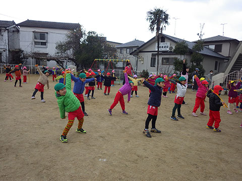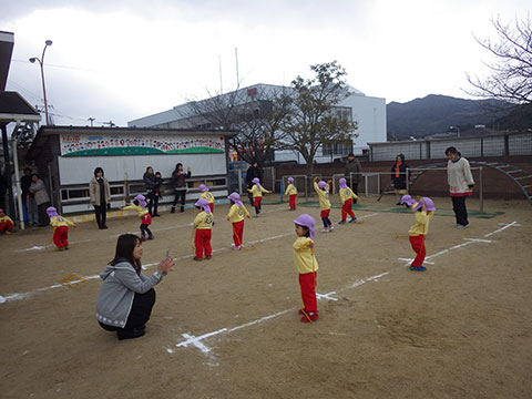 まずはなわとび体操で温まって・・・