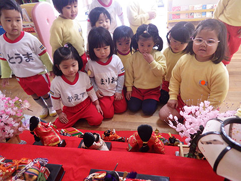 三人官女・五人囃子、桃の花、ぼんぼり・・等々、