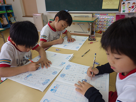 年中少児の机に向かう姿勢も、