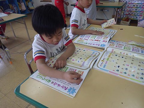 年長児の学習、残りページもだいぶ薄くなりました