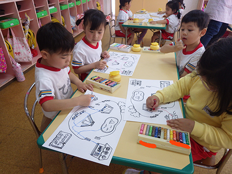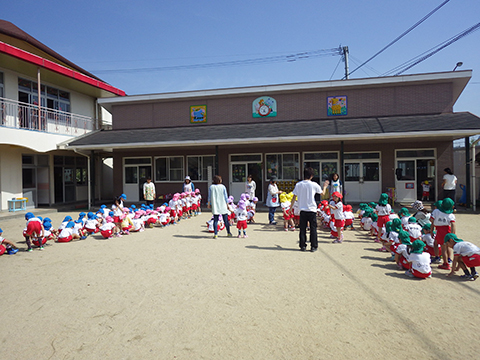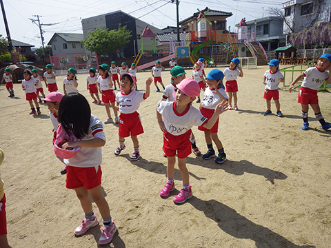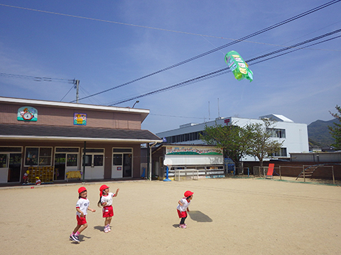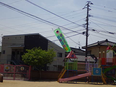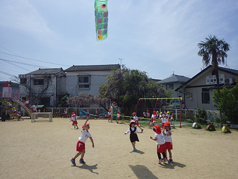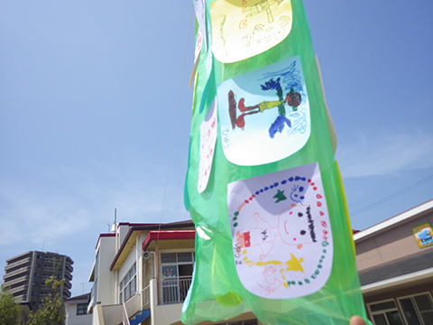 園庭には各クラスカラーのこいのぼりも泳ぎます。