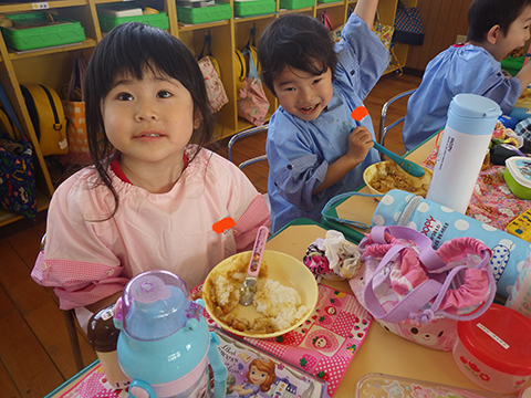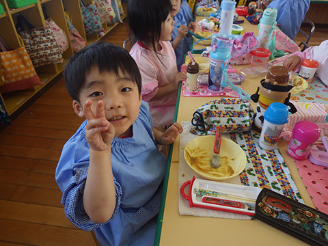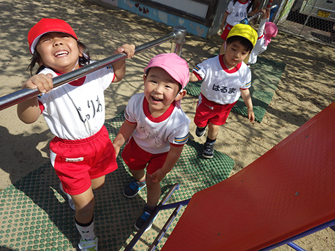 こうして朝から元気に笑顔であそぶといういつもの風景。