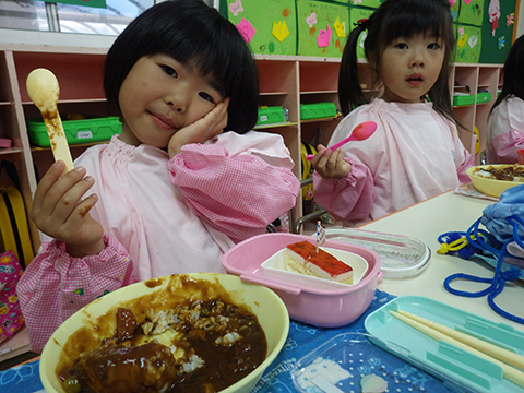 今日の給食はホッペが落ちそうになるくらいおいしいハヤシライス