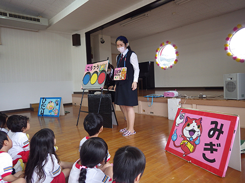 交通安全教室後、年長児の新しいお友だちを紹介
