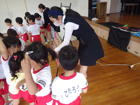 アンパンマンの話や楽しい体操のあとは