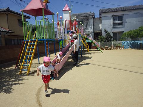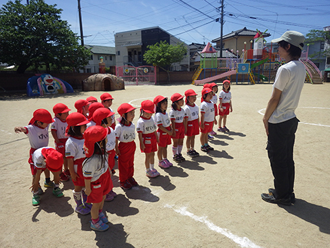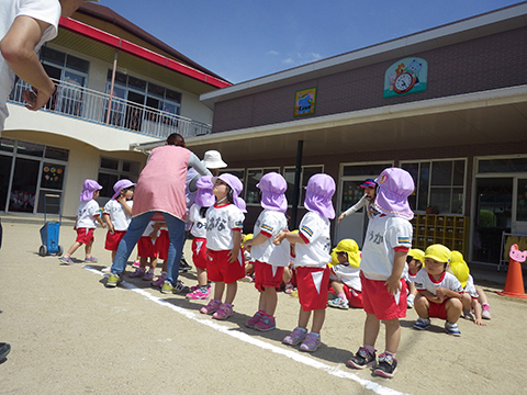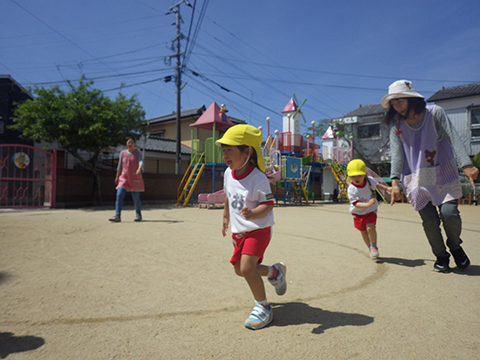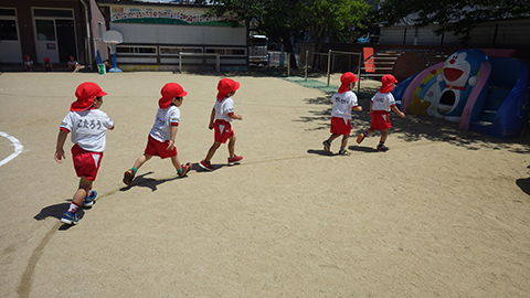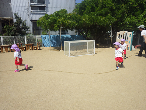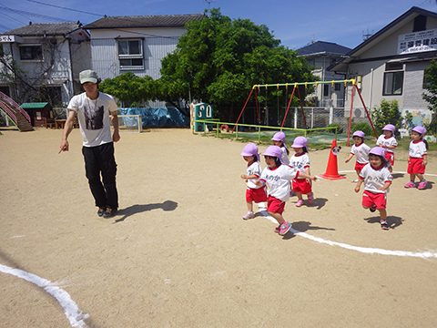 園庭に引かれたラインの上を走ったり、