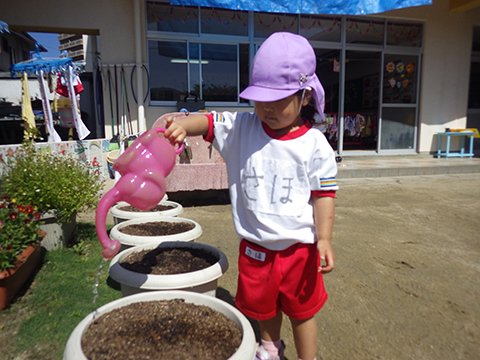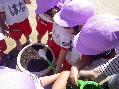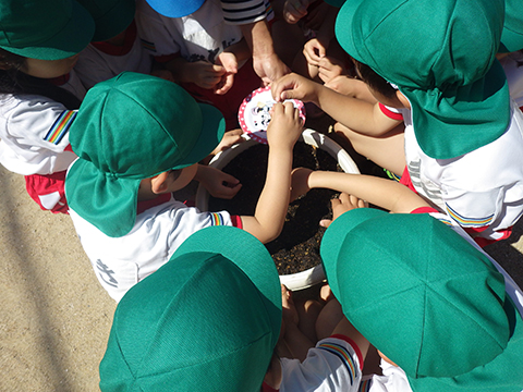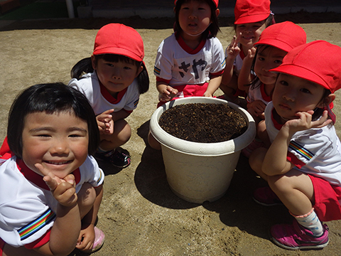 今日は全園児アサガオの種蒔きの日