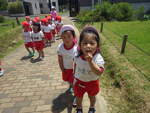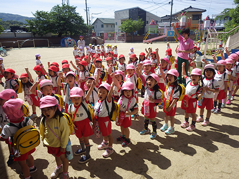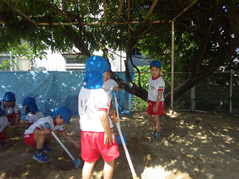 お出かけでいつもより広ーく使えた幼稚園で年少児が