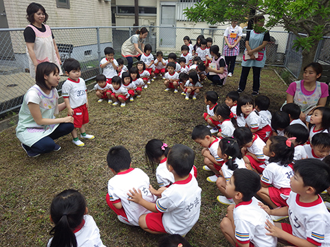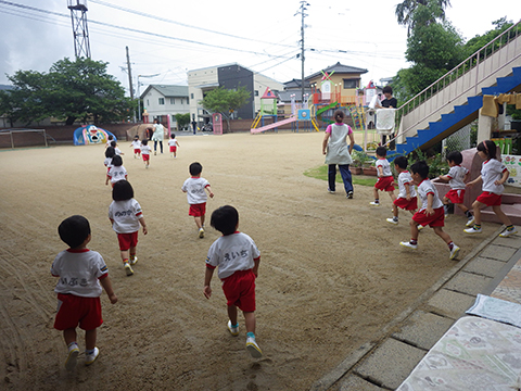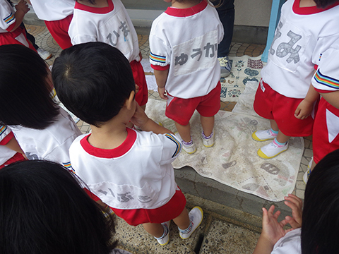 新入園児のみんなにとっては初めてのベルの音にびっくりしたと