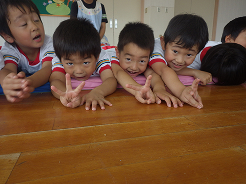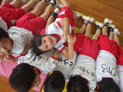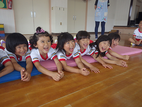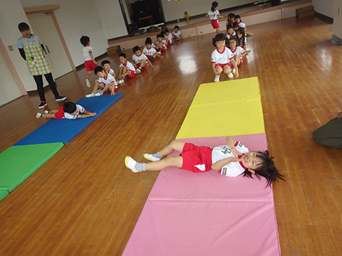 次はマットの上に寝転んだお友だちの上をゴロゴロゴロゴロ