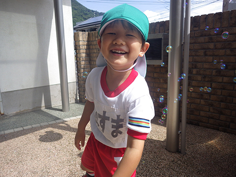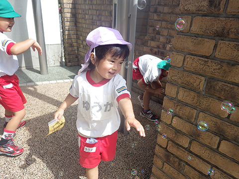 朝からシャボン玉あそび